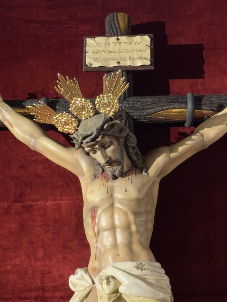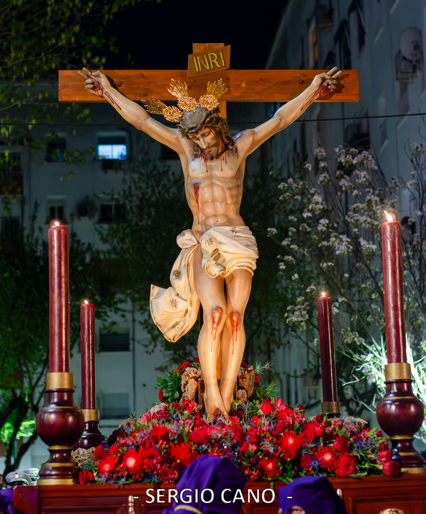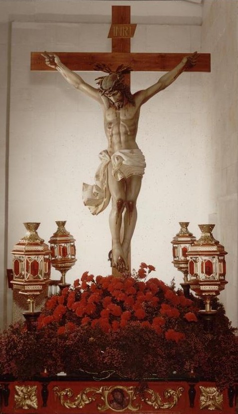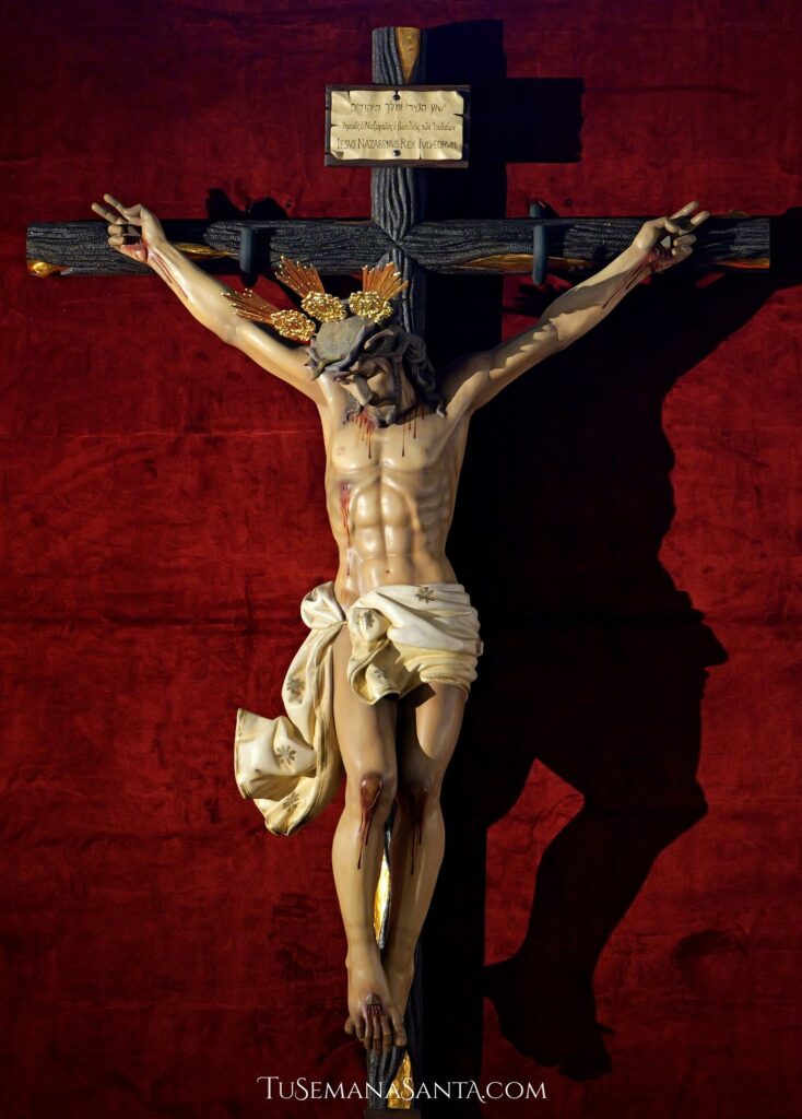 Este bellísimo crucificado de tamaño natural, que representa a Cristo muerto en la cruz, fue adquirido por la Cofradía, el 14 de febrero de 1970, a la casa de Imaginería Religiosa Serquella, empresa ubicada en la localidad gerundense de Olot. La Cofradía había contactado con D. Manuel Serquella meses antes, en 1969, para llevar a efecto la adquisición. La tradición de los talleres olotenses en la realización de imágenes sacras es extensísima y se remonta al siglo XIX.