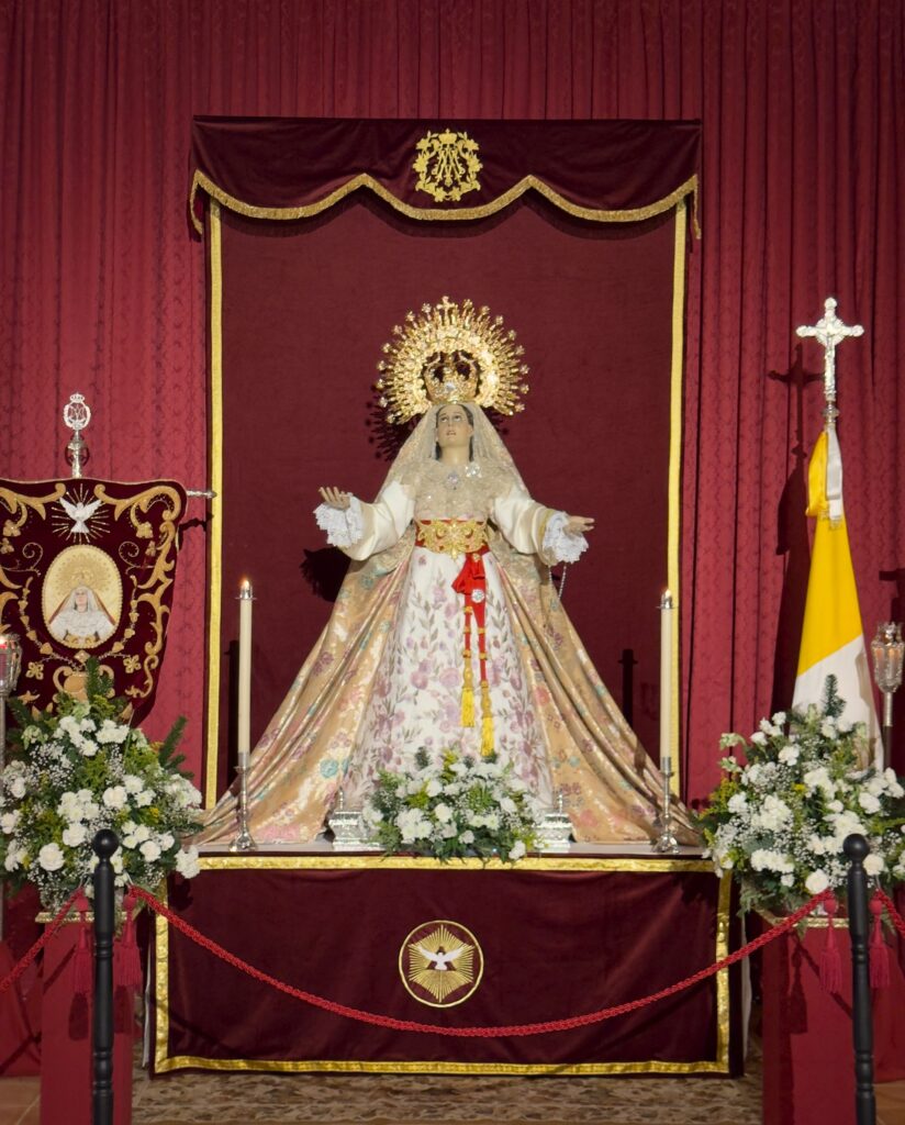 Su lugar habitual de culto está en un pequeño altar en el lado de la Epístola de la iglesia parroquial del Espíritu Santo ante un dosel en terciopelo granate con el monograma de «Ave María» bordado en oro, confeccionado por el Taller de Bordados de la Franciscana Hermandad y Cofradía del Santísimo Cristo de la Vera Cruz y María Santísima de Nazaret de Mérida (Badajoz) en 2001.