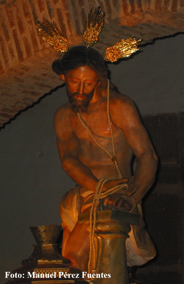 Esta escultura de bulto redondo es la primera versión barroca de un Jesús atado a la columna con columna baja realizada en Sevilla. El 22 de junio de 1655 el cacereño D. Francisco Carrasco firmó un contrato con D. José de Arce por el que este se comprometía, en el plazo de tres meses, a entregar la imagen policromada y en un cajón para transportarla a Cáceres, importando 133 pesos de plata de a ocho reales cada uno.